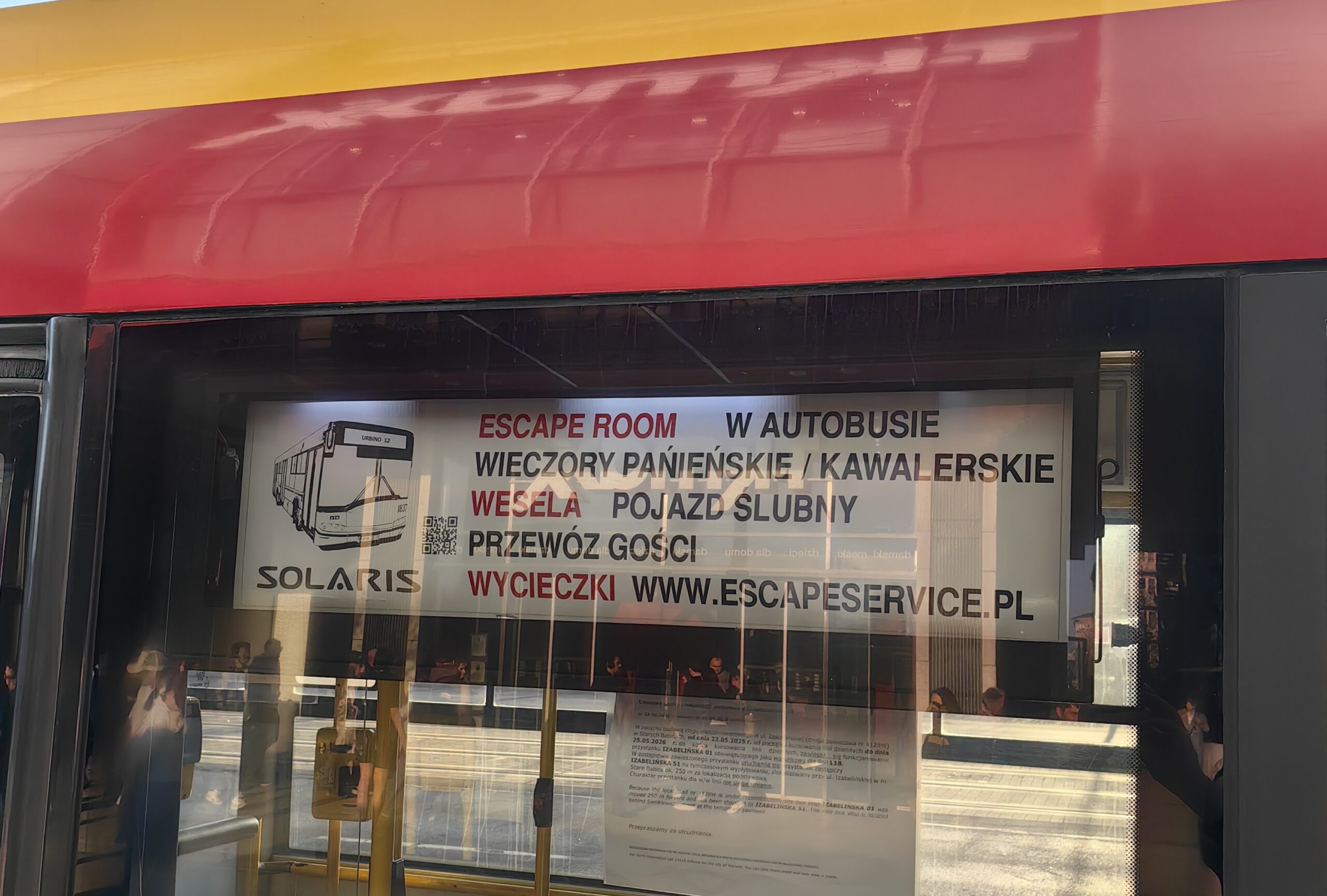 Mobilny escape room dla firm w Warszawie w prawdziwym autobusie miejskim. Idealna atrakcja na integrację, event firmowy lub akcję marketingową.